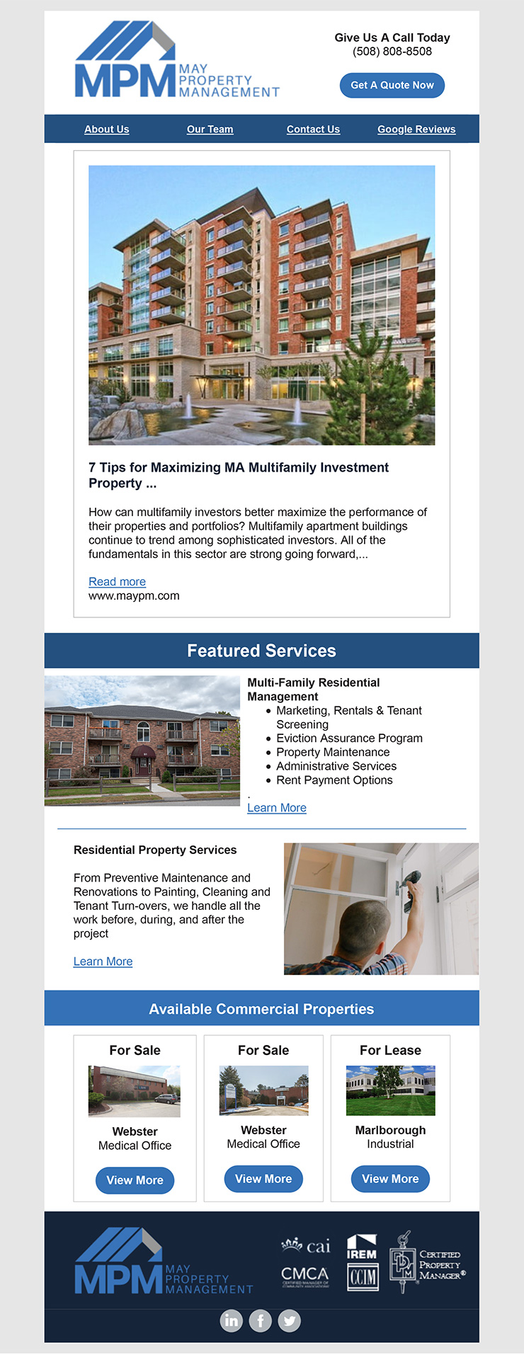 Our client needed help streamlining their email marketing efforts. They offered a variety of home and real estate services to prospects from multiple sources. Additionally, they wanted a platform for building brand credibility while tracking engagement. Using dynamic content blocks, we created a single template that delivered personalized content for each recipient. Our client reduced the amount of time needed to create each email while providing the most relevant information for each recipient.